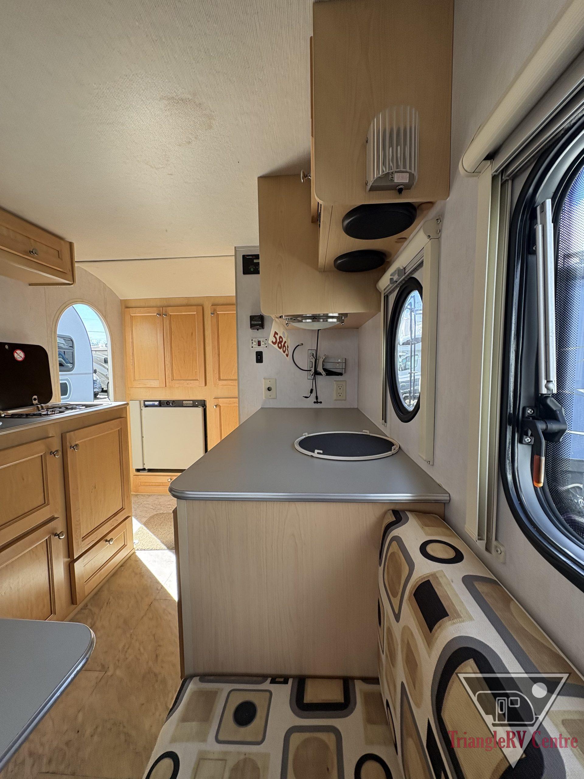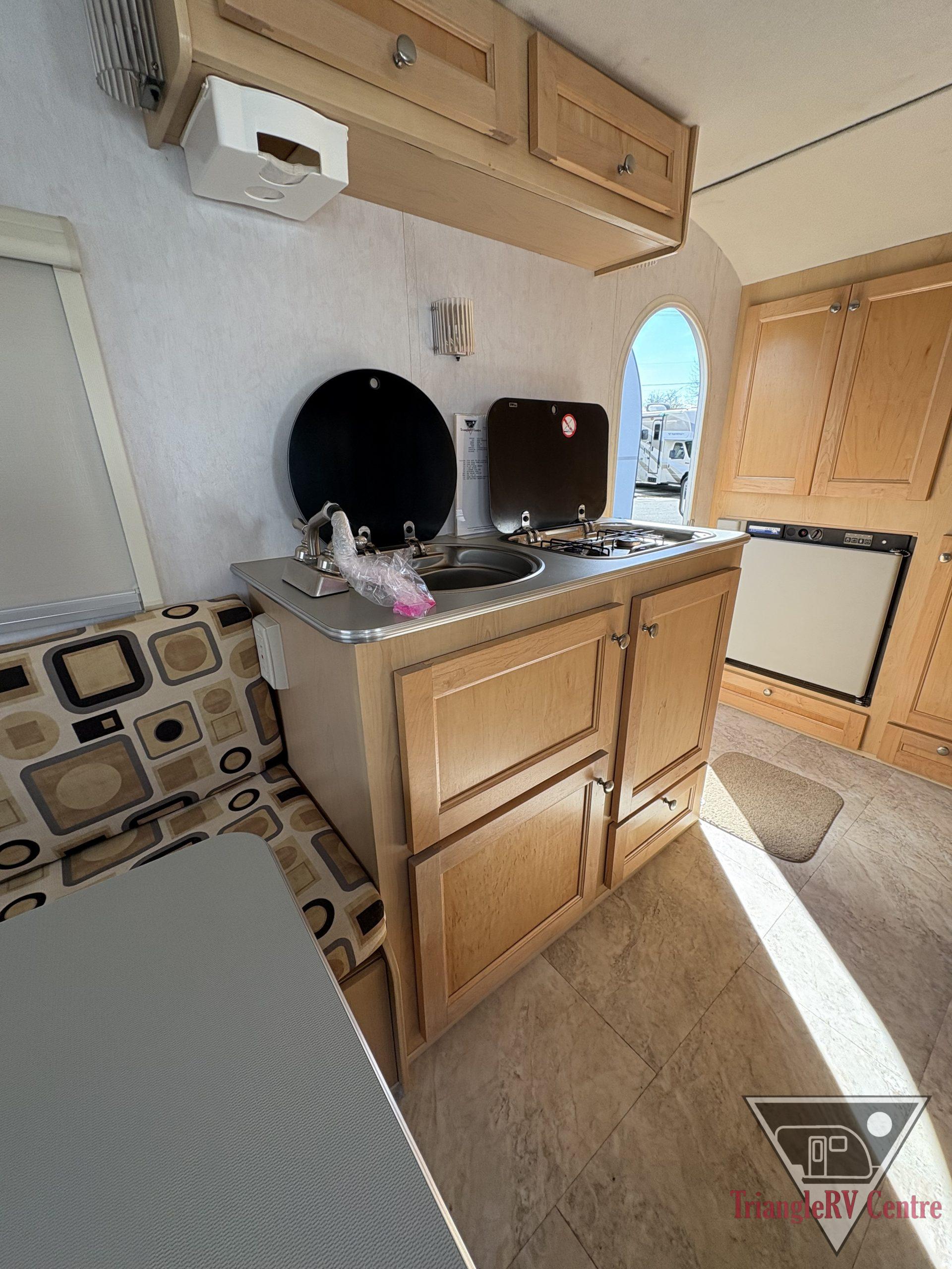 With a base weight of less than 2200 pounds, T@DA is lightweight, easy to tow and even easier to set-up and use. Plus, T@DA’s innovative floorplan maximizes sleeping, living and storage space. It includes a fully functional kitchen with a refrigerator, stove top, sink and a microwave. It even includes a bathroom.
