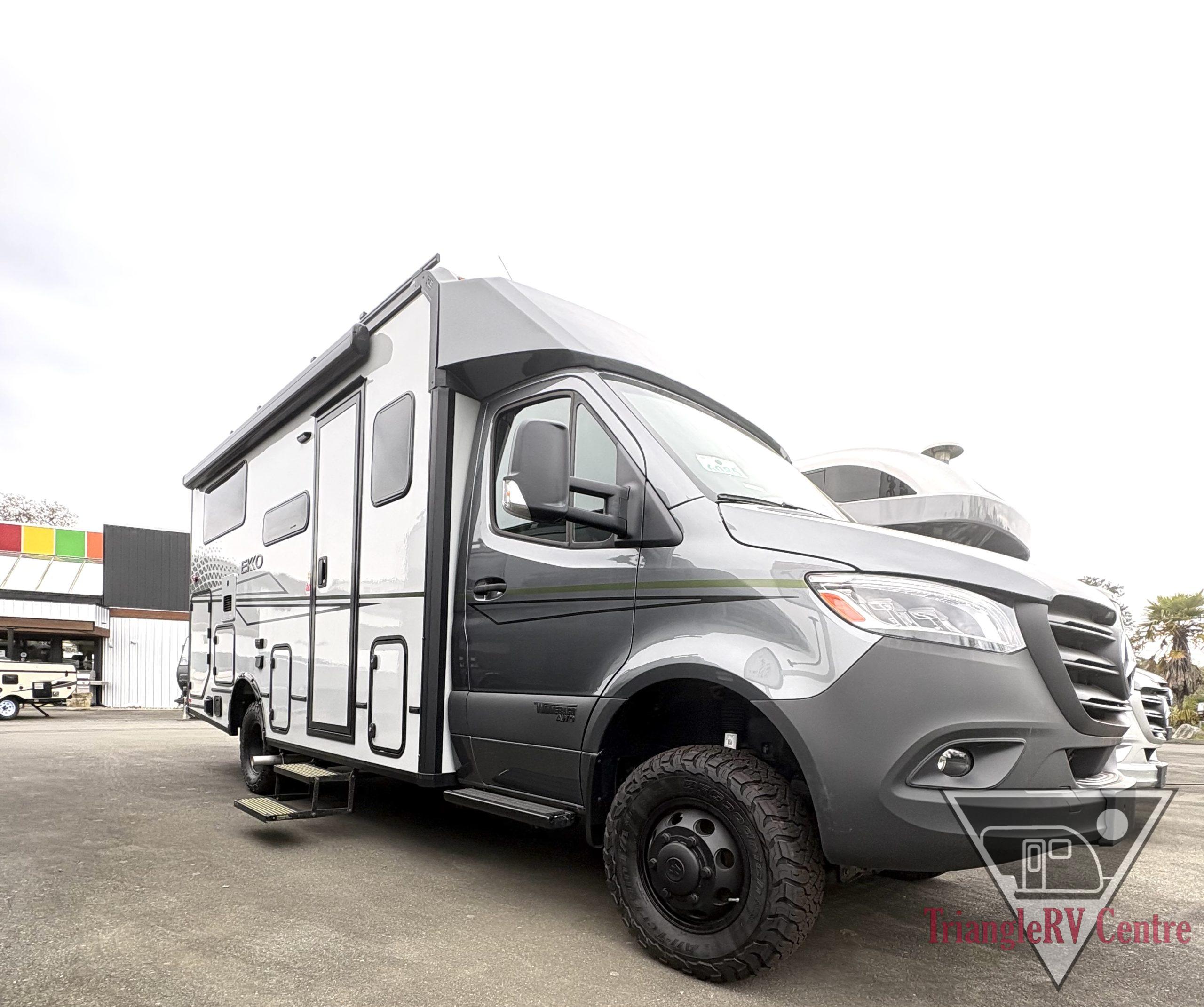 The all wheel drive, all season EKKO is now available on the Mercedes Benz Sprinter chassis, with even more storage and livability than ever! The all wheel drive, all season Winnebago EKKO combines the efficiency of a camper van, the added capacity of a Class C coach, and the enhanced capability of AWD to create not just a new model, but an entirely new type of RV. Blending the off road rugged nomadic nature of van life with the storage and livability of traditional touring class motor homes, the all new, all season Winnebago EKKO provides unmatched off grid and all season capabilities. Its standard all wheel drive capability goes where other motorhomes can’t, yet with its van size, is easy to drive and easy to park.