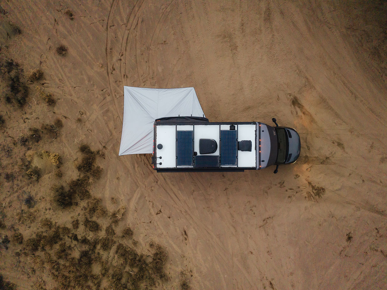 AluCab Bat Wing awning, driver and rearward